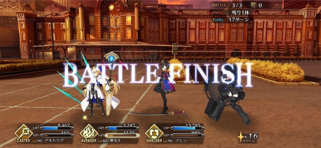 マリーはゲージ破壊で回避3回とチャージ。即宝具撃ってくるわけではない。必中礼装付けといた方が良かったかなと思ったけど、ダメ元の蘭丸の魅了が効いたので殴った後に景清の宝具でOKだった。